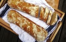 Багет "Сырный" - вырабатывается из муки пшеничной высшего или первого сорта, соли, улучшителя "Классик" фирмы "ИРЕКС", дрожжей, сыра и другого сырья, разрешенного Минздравом РБ.