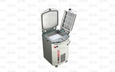 Аппарат без труда можно перемещать по производственному помещению благодаря тому, что он оснащен большими колесами и ручкой защиты элементов контроля и управления.