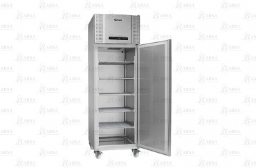 Морозильный шкаф с фронтальной и внутренней нижней панелью из нержавеющей стали, внешними и внутренними боковинами из алюминия, 5 решетчатыми полками с пластиковым покрытием и защитой от опрокидывания.