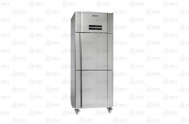 Двухдверная модель с двумя компрессорами. Разделение доступного полезного объема на два отсека позволяет с наибольшим удобством организовать хранение продукции, разделив ее по типам. Двери, внутренние и внешние боковые панели, а также 4 прочные решетчатые полки с защитой от опрокидывания изготовлены из нержавеющей стали.