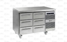 Холодильный стол подходит для использования в островном или в пристенном варианте, при необходимости может устанавливаться под существующую рабочую поверхность. Подходит для использования гастроемкостей GN 1/1 (530х325мм).