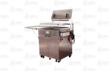 Напольная модель с расстойной камерой (+10 противней в комплекте). Аппарат оснащен устройствами для: переворачивания и выкладки, для подъема, для извлечения; а также сеткой-уловителем, откидывающейся крышкой для фритюрной ванны, регулятором температуры на микропроцессоре с индикацией температурного режима. Материал корпуса - нержавеющая сталь. Загрузка - опрокидывающиеся противни, используемые для расстойки тестовых заготовок.