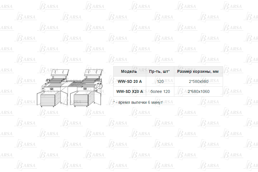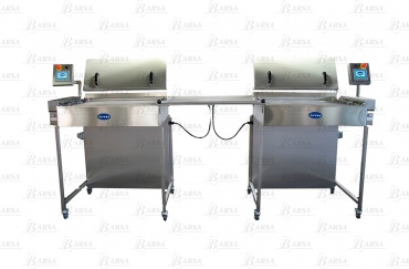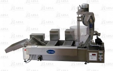 Двойной автоматический аппарат для производства пончиков оснащен устройствами для переворачивания и выкладки, для подъема и извлечения, сеткой-уловителем, откидывающейся крышкой для фритюрной ванны с электроприводом, компьютерным устройством для фритюра с полностью автоматизированным технологическим процессом обжаривания, с 4 этапами жарения и возможностью сохранения 25 различных программ работы, регулятором температуры на микропроцессоре с индикацией температурного режима. Загрузка - опрокидывающиеся противни, используемые для расстойки тестовых заготовок.