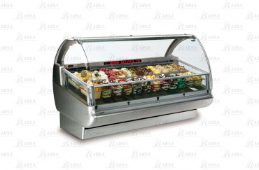 Профессиональная витрина с трехмерным обзором продукта, что обеспечивается остеклением, доходящим до уровня дна зоны выкладки, прозрачными контейнерами и подсветкой выкладки спереди. Даже маленькие дети без труда могут рассмотреть мороженое. Корпус – цельный, с наполнением из пенополиуретана, вспененного углекислотой, без использования озоноразрушающих веществ. Рабочая поверхность – из полированной нержавеющей стали, задняя панель – из стали, выкрашенной порошковой краской. Корпус витрины – из крашеной стали с абразивно-устойчивым покрытием. Каркас витрины, поверхность выкладки и задние части боковых панелей сделаны из углеродистой стали, выкрашенной порошковой краской.