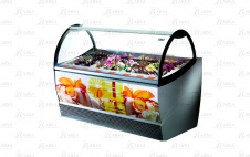 - Рабочая температура регулируется в диапазоне от -20⁰C до +2⁰C. Поэтому в холодное время года, когда спрос на мороженое падает, витрина может использоваться как кондитерская (лотки для кондитерских изделий выставляются на поверхность зоны выкладки);