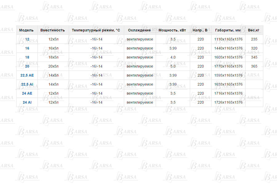 - Используемые контейнеры (стальные): 5 л (360х165х120 мм или 360х250х80 мм), 7 л (360х165х150 мм), 10 л (360х250х120 мм) и 12 л (360х165х150 мм);