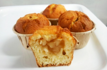 Кекс "Дели-маффин" с начинкой - подготовленный сырой полуфабрикат "Делли-Маффин" отсаживают в формы, затем через кондитерский мешок отсаживают начинку "Софт-крем со вкусом банана" и выпекают до готовности. После выпечки и остывания поверхность посыпают декоративной пудрой "Вестфалия Супершни".