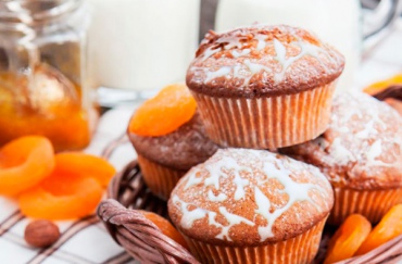 Кекс "Дели-маффин" с сухофруктами - в подготовленный сырой полуфабрикат "Дели-маффин" добавляют курагу и чернослив, перемешивают до однородной массы, отсаживают в формы и выпекают до готовности. После выпечки и остывания поверхность оформляют ванильной глазурью МГ "Ваниль".
