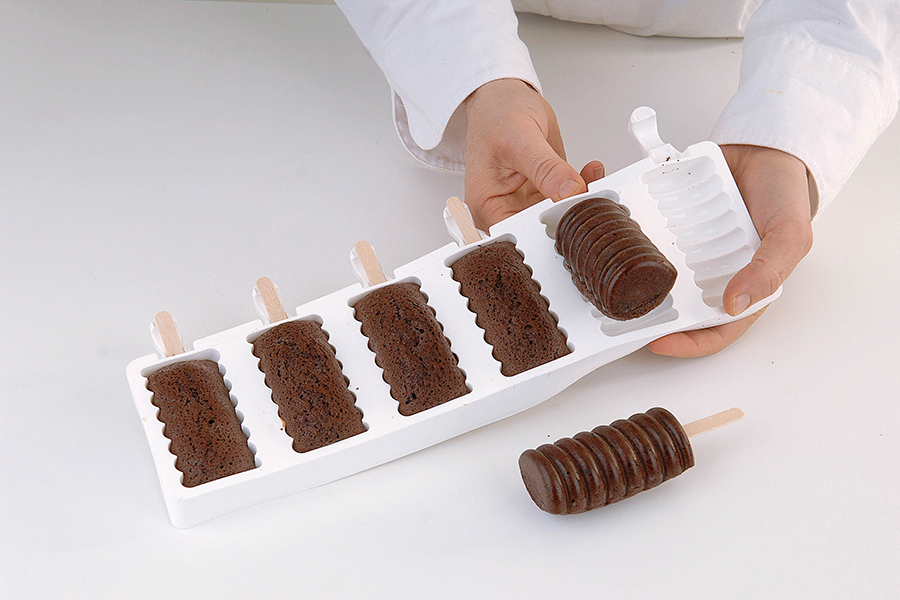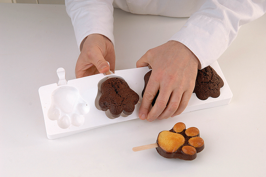 Кекс "Фигурный" шоколадный - в подготовленный сырой полуфабрикат «Мелла сметанный» добавляют пасту-какао «Каокрем», выкладывают в фигурные формы и выпекают до готовности. После выпечки и остывания все поверхности покрывают смесью для крема «Шокобелла» и художественно оформляют ванильной глазурью МГ «Ваниль».