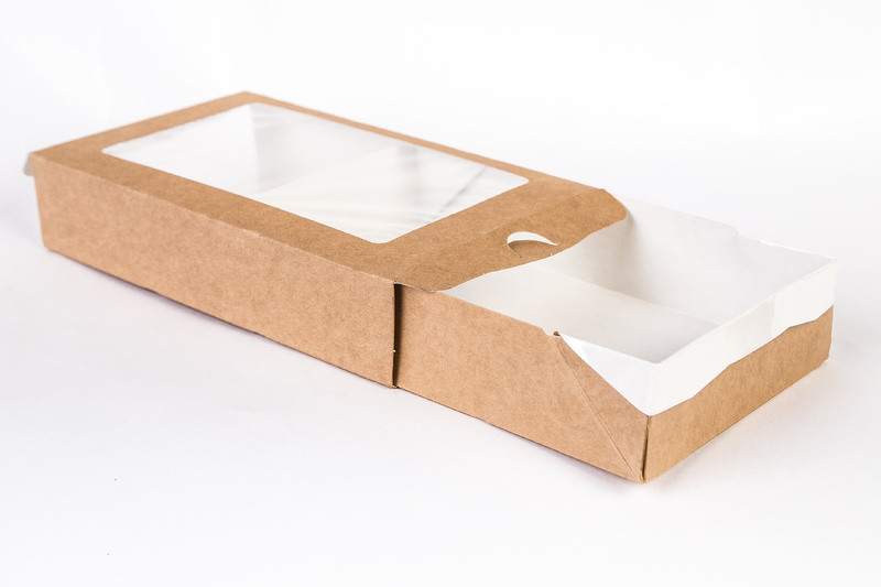 Коробка имеет внутреннюю ламинацию (жиро- и -влагопрочный внутренний слой). Подходит для разогрева в микроволновой печи.