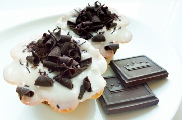 Пирожное "Корзиночка гурман" - подготовленный сырой полуфабрикат "Радуньский песочный" выкладывают в формы в виде корзиночки, заполняют начинкой маковой "Сароса", начинкой термостабильной "Черная смородина" и выпекают до готовности. После выпечки и остывания поверхность покрывают ванильной глазурью МГ "Ваниль" и посыпают декором шоколадным "Блоссомс темный".