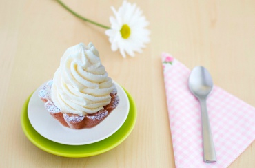 Пирожное "Корзиночка тропическая" - штучный выпечной полуфабрикат "Радуньский песочный" в виде корзиночки, заполняют полуфабрикатом отделочным "Французский" с добавлением начинки "Софт-крем со вкусом банана". Поверхность посыпают декоративной пудрой "Вестфалия Супершни".