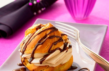 Пирожное "Лакомство" №2 - заварной п/ф "Палома-микс" №2 заполнен уваренным сгущенным молоком, смешанное с растительными сливками "Кондита". Поверхность оформлена глазурью МГ "Ваниль". Форма любая.