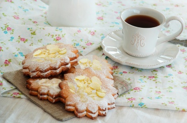 Пирожное "Песочная лакомка" - два штучных выпеченных полуфабриката "Мелла" песочный соединяют молоком сгущенным уваренным. Поверхность оформляют молоком сгущенным уваренным, орехами и посыпают декоративной пудрой "Вестфалия Супершни".