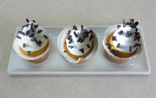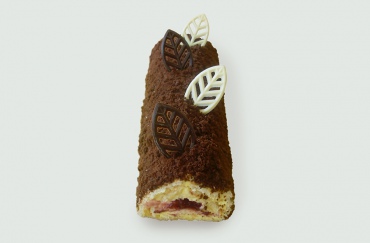 Пирожное "Рулетик-черри" - пласт бисквита "Легкий" покрывают полуфабрикатом отделочным "Французский" с добавлением начинки термостабильной "Вишня" и сворачивают в виде рулета. Поверхность покрывают этим же отделочным полуфабрикатом, обсыпают крошкой бисквита "Легкий шоколадный", украшают декорами шоколадными "Специальный" и "Специальный" белый".