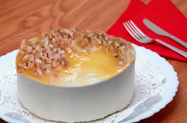 Пирожное "Скандинавское" бискотто - слой выпеченного полуфабриката “Мелла” покрывают кремом “Основной” с добавлением пасты для мороженого и десертов “Бискотто” и ставят в холодильник для застывания. После застывания поверхность отделывают желе-глазурью “Кристалин”, пастой для мороженого и десертов “Бискотто” и миндалем “Альмонд-хак”.