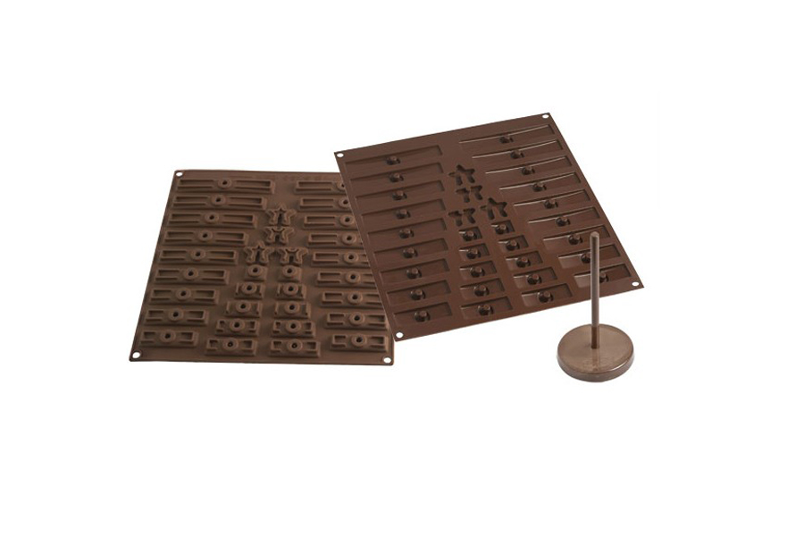 Новая форма для создания 3D-фигуры из шоколада. В набор входит: 2 силиконовые формы (2х112мл) и 2 стенда-колышка из полипропилена
