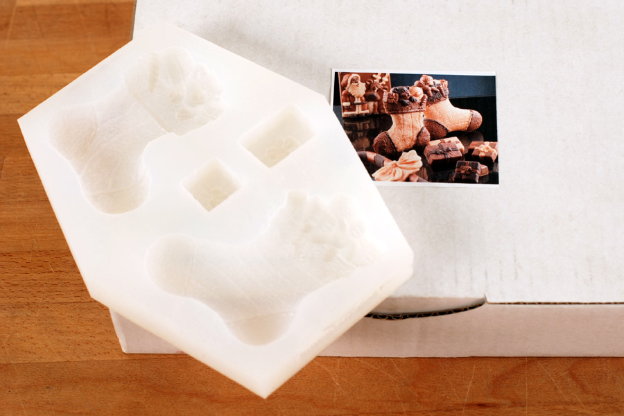 На форме 4 ячейки: 2 ячейки (подарок)-22х22х10мм/23х33х10мм; 2 ячейки(сапожок) - 65х85х8мм