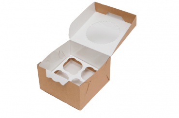 Коробка на 4 капкейка с окном, 160х160 h100 мм (арт.ECO MUF4)
