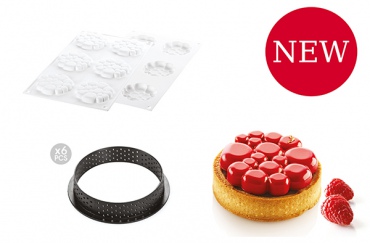 Набор: Форма силиконовая "Парадиз" 6 выемок (Ø70 h11 мм) и 6 колец для тарт перфорир.(Ø80 h20 мм)