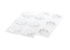 - 1 силиконовая форма с 6 выемками (диаметр 70мм, высота 11мм, общий объем 222мл).