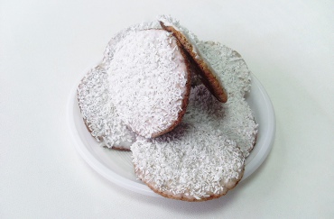 Сладость мучная "Кукис с глазурью и кокосом" - подготовленное тесто полуфабриката "Мелла-овсяный" делят на порции заданной массы, придают форму и выпекают до готовности. После выпечки и остывания поверхность оформляют ванильной глазурью МГ "Ваниль" и посыпают кокосовой стружкой.