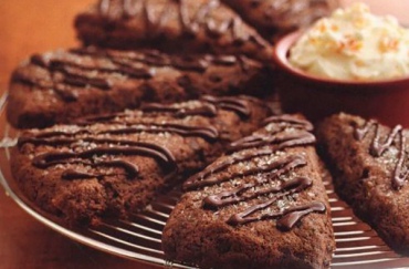 Сладость мучная "Шоколадно-ягодная" - подготовленное тесто полуфабриката песочного "Радуньский шоколадный" раскатывают в пласт, покрывают начинкой термостабильной "Черная смородина", посыпают крошкой (сырой) полуфабриката песочного "Радуньский шоколадный" и выпекают до готовности. После выпечки и остывания поверхность оформляют какао-глазурью жировой МГ "Чипс".