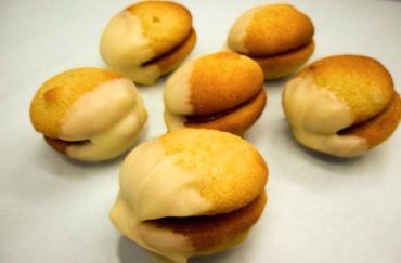 Сладости мучные "Персипанки с джемом" - подготовленное тесто сладости "Мучной персипан" через кондитерский мешок отсаживают на листы, застланные пергаментной бумагой, и выпекают до готовности. После выпечки и остывания попарно соединяют джемом "Пассата вишневый" и оформляют ванильной глазурью МГ "Ваниль".
