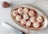 Сладость сахарная "Воздушный орешек" - подготовленный сырой полуфабрикат «Овазил-Фрио» через кондитерский мешок отсаживают на листы, застланные пергаментной бумагой, и выпекают до готовности. После выпечки и остывания поверхность изделия покрывают смесью для крема «Шокобелла белый шоколад» и посыпают струганным миндалем "Альмонд".