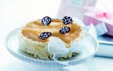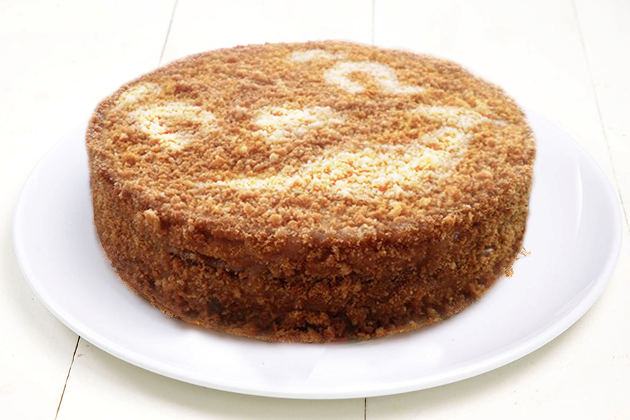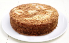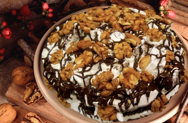 Торт "Арарат" - слой полуфабриката бисквитного "Браунис" покрыт полуфабрикатом отделочным "Сабрина-ваниль" и посыпан грецким орехом. Сверху уложены куски полуфабриката бисквитного "Браунис" в виде развалин, прослоенных полуфабрикатом отделочным "Сабрина-ваниль". Поверхность покрыта глазурью "Фехмарн" и обсыпана грецкими орехами.