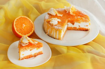 Торт "Фруктовый рай" - слои полуфабриката бисквитного "Асалода апельсиновая" прослаивают кремом "Основной" и желе "Кларо" №2 с добавлением ароматизатора "Пастаром Классик Апельсин" (предварительно застывшего и нарезанного на кусочки 1/2 часть идущего по рецептуре). Верхнюю поверхность покрывают кремом "Основной", художественно оформляют апельсинами, покрывают желе "Кларо" №2 с добавлением ароматизатора "Пастаром Классик Апельсин" (оставшейся частью идущего по рецептуре), украшают ванильной глазурью МГ "Ваниль" и посыпают декоративной пудрой "Вестфалия Супершни". Боковые стороны оформляют ванильной глазурью МГ "Ваниль".