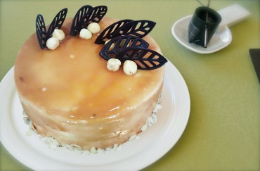 Торт "Подарочный" ореховый - в подготовленный сырой полуфабрикат "Мелла" добавляют пасту ореховую "Хазельнусс" и выпекают до готовности. После выпечки и остывания пласт полуфабриката "Радуньский песочный" смазывают джемом "Пассата абрикосовый" и поочередно укладывают слои полуфабриката "Мелла", прослоенные кремом "Лакомка-Фрио". Поверхность и боковые стороны покрывают этим же кремом и полуфабрикатом отделочным "Кристалин" с добавлением пасты ореховой "Хазульнусс". Верхнюю поверхность художественно оформляют декором шоколадным "Специальный" и цельным орехом. Низ боковых сторон обсыпают струганным лесным орехом "Нат".