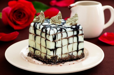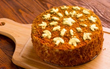 Торт "Подарочный" ромовый - пласт полуфабриката "Радуньский песочный" смазывают джемом "Пассата абрикосовый" и поочередно укладывают слои полуфабриката "Мелла", пропитанные сиропом и прослоенные кремом "Основной" с добавлением ароматизатора "Паста ром". Поверхность и боковые стороны покрывают полуфабрикатом отделочным "Шокобелла" с добавлением ароматизатора "Паста ром". Верхнюю поверхность художественно оформляют декором "Мрамор". Низ боковых сторон художественно оформляют какао-глазурью жировой МГ "Чипс".
