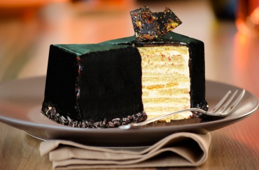 Торт "Подарочный" с нугой - в подготовленный сырой полуфабрикат "Мелла" песочный добавляют пасту ореховую "Хазельнусс" и выпекают до готовности. После выпечки и остывания слои полуфабриката "Мелла" песочный соединяют кремом "Лакомка-Фрио". Верхнюю поверхность покрывают полуфабрикатом отделочным "Шоконуга" и художественно оформляют какао-глазурью жировой МГ "Чипс" и струганным лесным орехом "Нат". Боковые стороны покрывают полуфабрикатом отделочным "Шоконуга" и низ боковых сторон обсыпают декором "Шоколадные хлопья".
