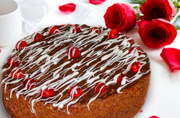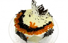 Торт "Шоколадный восторг" - слои бисквита "Шоколадно-ореховый" пропитаны сиропом №95, поочередно прослоены джемом "Пасата вишневый" и полуфабрикатом "Шоко". Верхняя поверхность покрыта полуфабрикатом "Шоко" и художественно оформлена какао-глазурью жировой МГ "Чипс", ванильной глазурью МГ "Ваниль" и желейными шариками "Желе фрут красные". боковые поверхности покрыты полуфабрикатом "Шоко" и обсыпаны крошкой бисквита "шоколадно-ореховый".