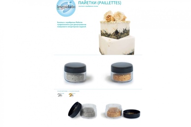 В продаже появились красители на основе какао-масла Спрей-Велюр (Spray Velvet) и декоративные украшения Пайетки от итальянского производителя Lesepidado: